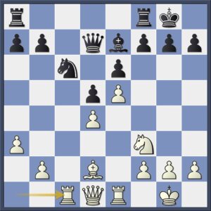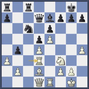 Maar dit had zwart goed kunnen opvangen met 24…Lh6!. Na 24.Th3! en g2-g4 had wit nog steeds een sterke aanval gehad.