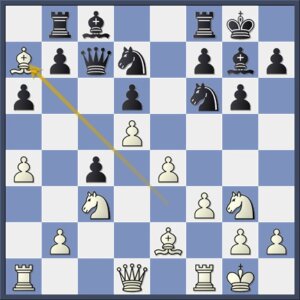 Goed genoeg, maar het brengt zwart wellicht enige verlichting. De engine vindt de manoeuvre Lc2-d1-g4 het sterkste omdat de zwarte d7-loper de stelling nog een beetje bij elkaar houdt.