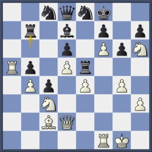 Een grappig idee; de toren wordt ‘opgepot’ om eerst nog even d4 te dekken en later op het juiste moment naar g3 te switchen. De engine is niet onder de indruk en zegt dat het gelijk staat, zelfs iets beter voor zwart na 17…Tab8.
