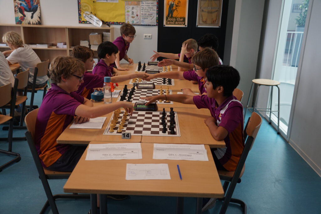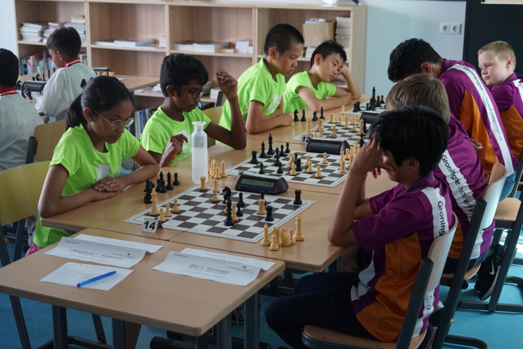 Op zaterdag 28 juni is in Arnhem de finale van het NK Schoolschaak basisonderwijs Algemeen gespeeld. De sterkste 24 teams waren nog over van de meer dan 2.300 (bijna 10.000 kinderen) die in november vorig jaar waren gestart met hun lokale voorronden. De speellocatie was het gebouw van de Rivers International School. De plaatselijke schaakvereniging ASA organiseerde de finale. Met een heel team van vrijwilligers zorgden ze dat het de teams aan niets ontbrak. Er was zelfs aan eten gedacht die ze vooraf konden bestellen en nog voor de prijsuitreiking konden afhalen bij de kantine. Wat een service!