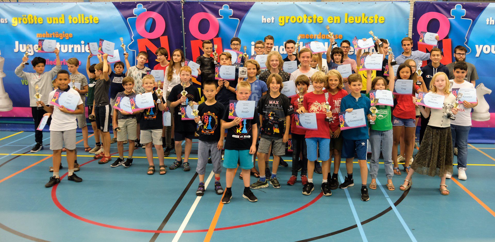 Begin augustus waren in Borne de Open Nederlandse Jeugdschaak Kampioenschappen (ONJK). Met 275 deelnemers was het weer lekker druk en werd in 8 leeftijdscategorieën gespeeld om de titels algemeen en meisjes. Bovendien waren er via het gecombineerde FGH toernooi nog twee extra titels te verdienen voor de jongste talenten, in totaal dus 20 titels. In de C groep pakte Tyani De Rycke (Bel) zelfs beide titels. Proficiat.