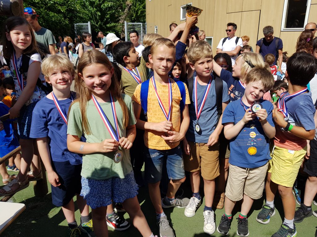 Einde van het seizoen: buiten vallen de mussen van het dak en binnen zweten wedstrijdleiders op indelingen en uitslagen, terwijl twee spelertjes binnen een paar tellen een herdersmat op het bord brengen. Mooi, dat hebben we dan ook weer gehad. Voor het zo ver is, wordt het toernooi geopend door Margaret namens de school en daarna komt meester Eric van de KNSB met wat technische dingen. Niemand die daar echt op zit te wachten, want schakers willen schaken(!), maar het is altijd verstandig om toch even goed te luisteren. En bovendien is het gewoon een aardige man.