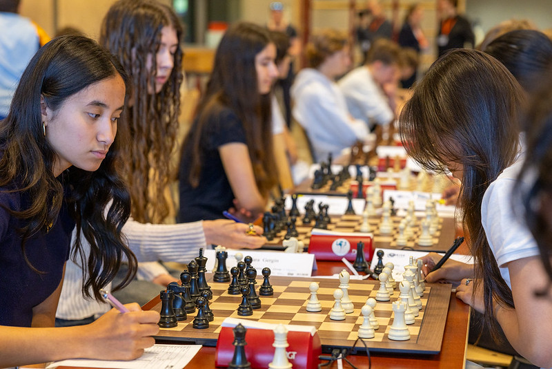 In deze groep waren er precies acht deelneemsters die daarom ook een enkelrondige achtkamp speelden. Hoewel het na de eerste ronden nog wat onoverzichtelijk was, kwam er tekening in de strijd naarmate het toernooi op zijn einde liep. Bij het ingaan van de laatste ronde stond Elysia Feng (1876) een punt voor op haar naaste concurrente, Isafara Gergin (1944) en het toeval wilde dat beide dames het in een onderling duel mochten gaan uitvechten. Elysia met wit wist van te voren dat Isafara zich tegen 1.e4 zou bedienen van de Caro Kann met 4…Pf6 5.Pxf6 exf6 hetgeen populair is geworden sinds Magnus Carlsen dit systeem is gaan spelen. En als de wereldtop zich ermee bemoeit, willen die varianten al direct enorm veel vertakkingen opleveren. En dat leidt dan weer tot een nieuw soort gevecht waarin de engine de boventoon voert en er soms krankzinnige taferelen kunnen ontstaan. Elysia had in haar voorbereiding gezien dat er ergens een soort “herhaling van zetten idee” mogelijk was en wilde daar dan toch voor kiezen. Maar toen Isafara haar uit haar voorbereiding had gehaald met een nieuwtje leek het toch nog even mis te gaan voor de witspeelster. Gelukkig voor haar was de stelling zo ingewikkeld dat ook Isafara er niet in slaagde om de winst te vinden en uiteindelijk eindigde dit adembenemende gevecht in een heel curieuze zetherhaling! Feng dus kampioen.