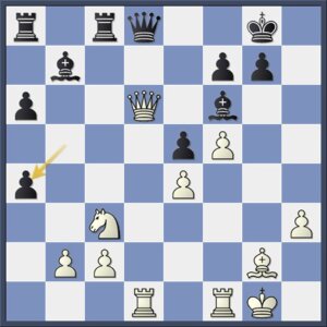 En zonder dat wit nu zoveel geks heeft gedaan staat zwart duidelijk beter. 24.Pxa4 is natuurlijk niets vanwege 24…Txc2, zwart dreigt al 24…Dxd6 25.Txd6 a3, en na 24.Dxd8+ Lxd8 wordt de zwartveldige loper een monster. Zo verraderlijk is de Najdorf!