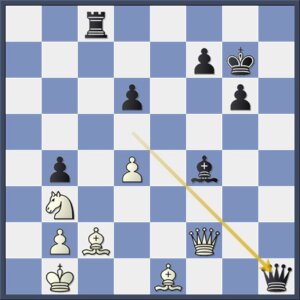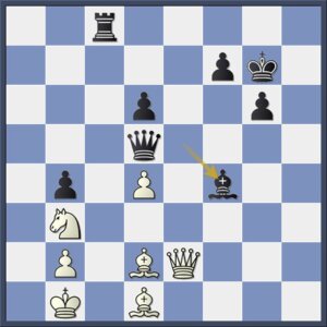Fraai aanvalsspel over de zwarte velden. Wit is reddeloos verloren.