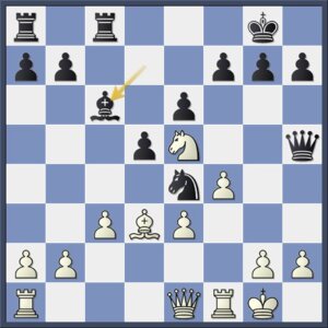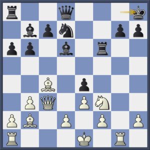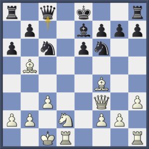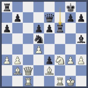 Maar hiermee gaat zwart te ver. Met 17…Tf8! had hij zijn initiatief kracht bij kunnen zetten. Kunins stukoffer (of schijnoffer, want wit moet de dame geven) is creatief, maar het blijkt niet te werken.