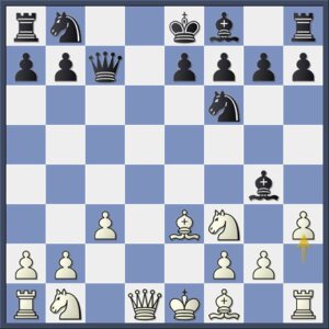 En ook hier kon zwart de deur nog enigszins dicht houden met 11…Pxc3 12.Dxc3 e5.