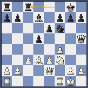 Het wanhoopsidee 16…Pa5 werkt ook niet na 17.Lxc5 of ook 17.Lb3 Pxb3+ 18.axb3 bxc4 19.Lxc5 en de toren op a8 staat in.