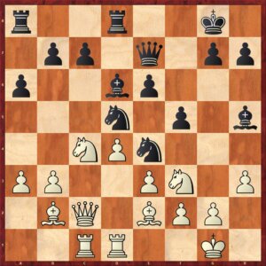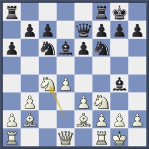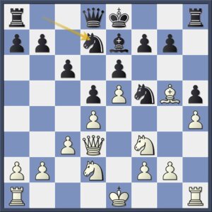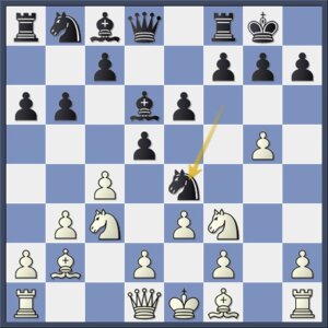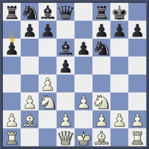 Wit heeft tweemaal licht gezondigd tegen de afruilwetten (ruil niet zelf maar laat je tegenstander ruilen), maar zwart speelt hem nu in de kaart. Er waren aantrekkelijke alternatieven, zoals het scherpe 11…e5 of het flexibele 11…b6.