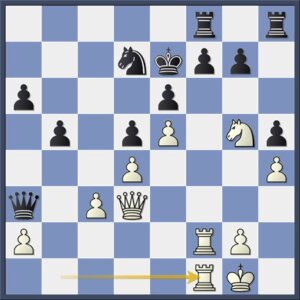 Na 22…fxg5 is wit een zet sneller dan in de bovengegeven variant en wint hij met 23.Tf7+ Kd8 24.Dxe6.
