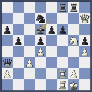 Een fraaie stelling. Het is duidelijk dat zwart geen van beide witte stukken kan slaan.