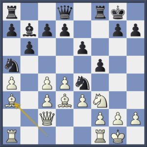 Nu is wit te laat met het zetten van zijn loper op a3, maar direct 11.La3 kon goed beantwoord worden met 11…c5 gevolgd door …0–0 en eventueel …d6. De zwarte centrumpionnen zijn flexibel en wit kan ze niet aanvallen.