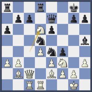 Clubgenoot René Olthof schrijft: “Tot hier had Anna deze variant berekend. Ze had niet in de gaten dat wit gewonnen staat na 27.d5!.”