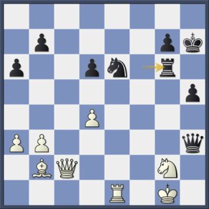 Het f3-paard kan niet weg wegens 30…Tf2, maar nog sterker was 29…Pd5.
